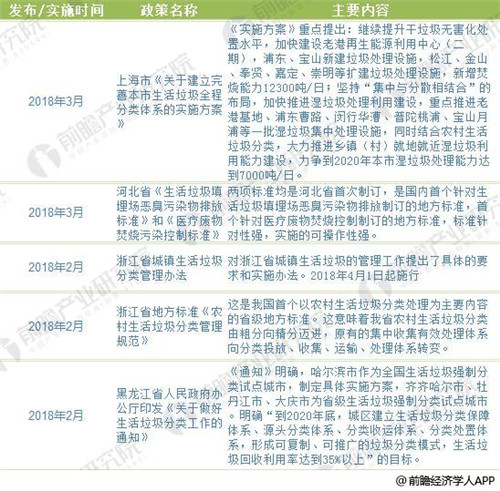 截至2018年各省市生活垃圾处理政策汇总及解读